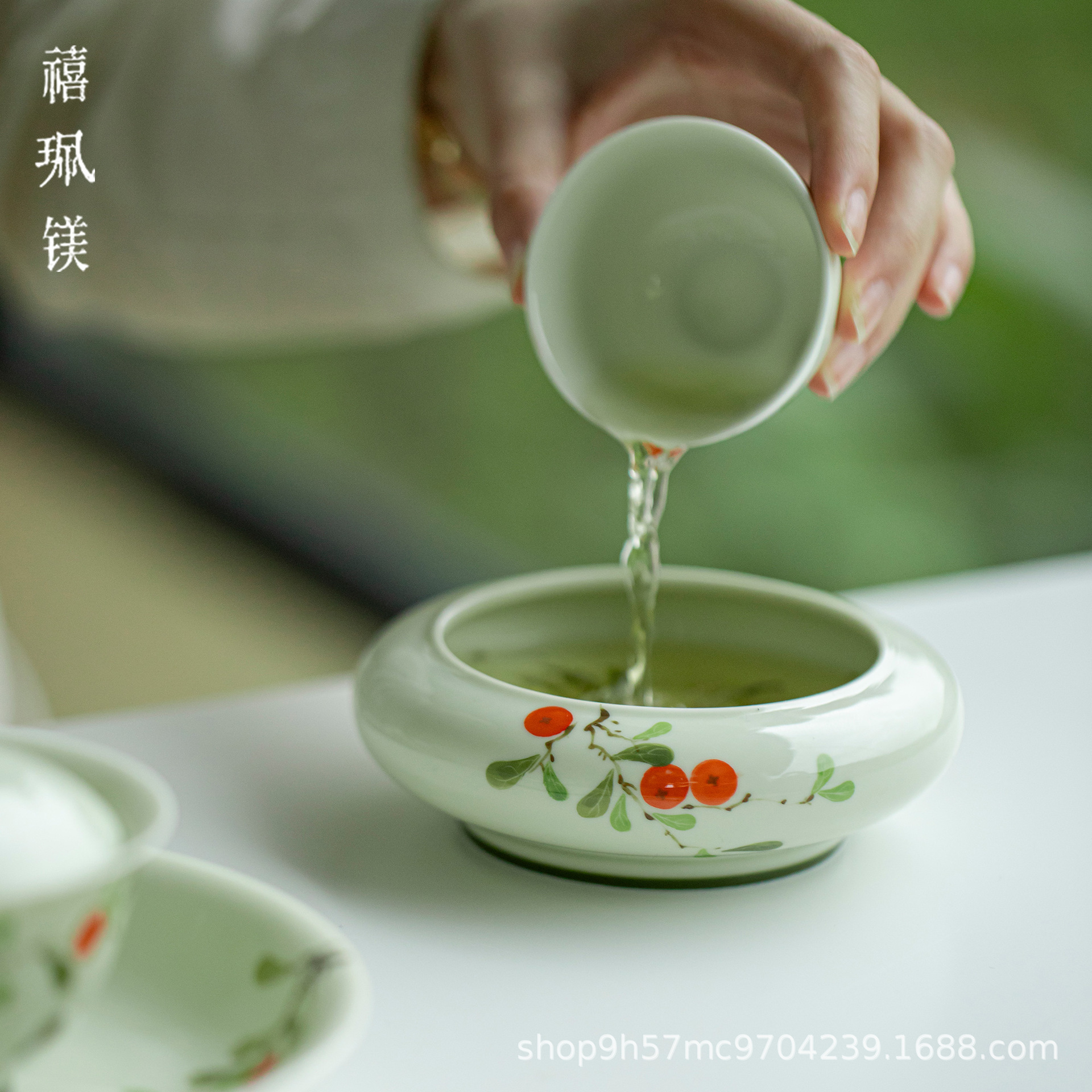 禧マグネシウム建果物青手描き楊梅トランペット水孟茶デスクトップ茶滓シリンダー廃水シリンダー灰皿茶道
