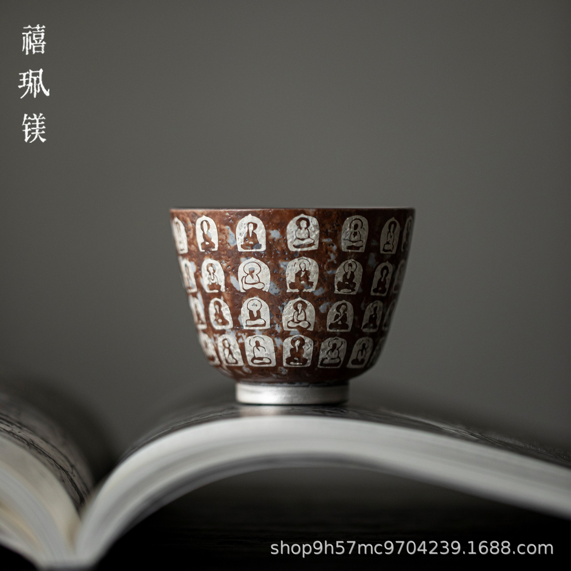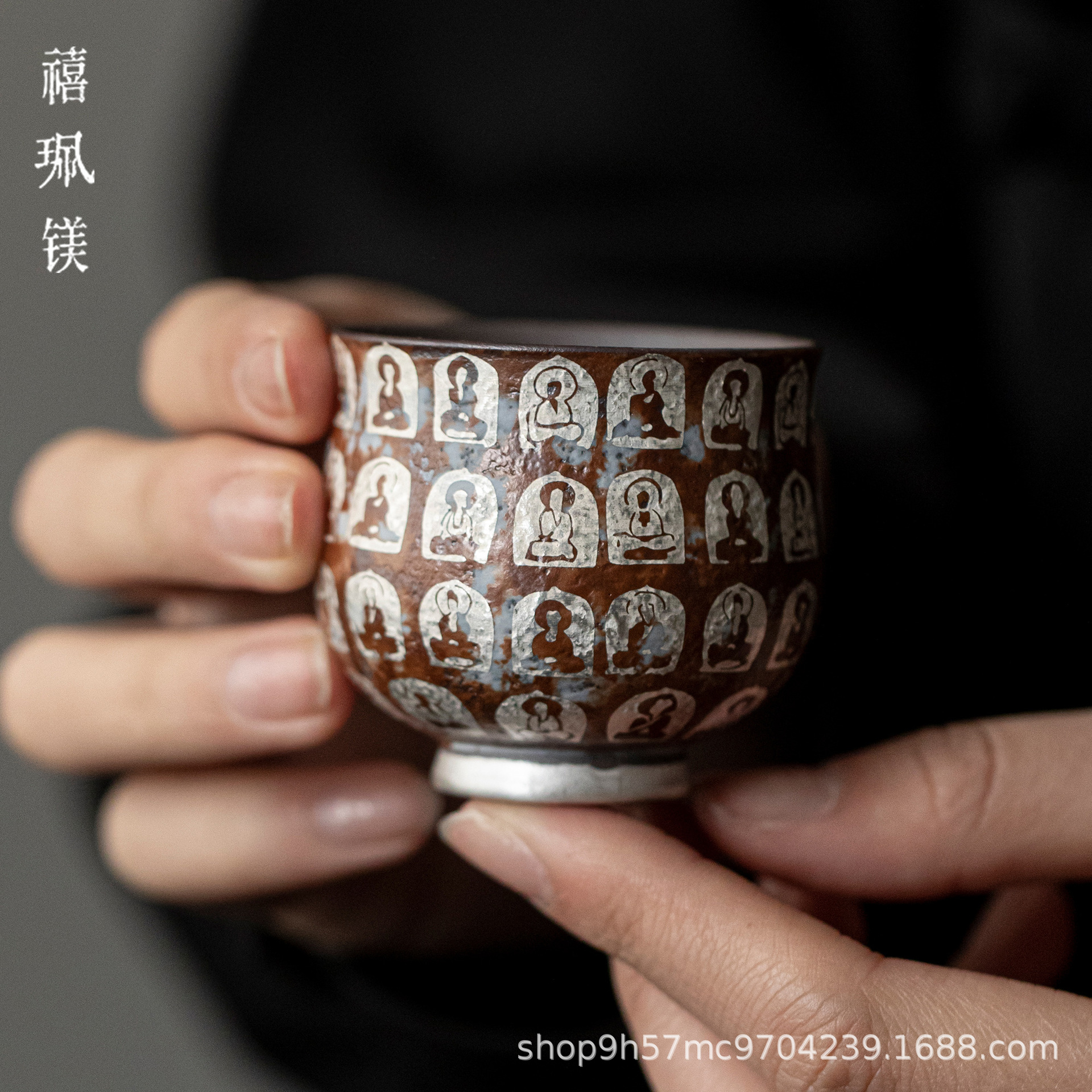 禧マグネシウム中国式禅意銀万仏品茗杯家庭用陶磁器カップ