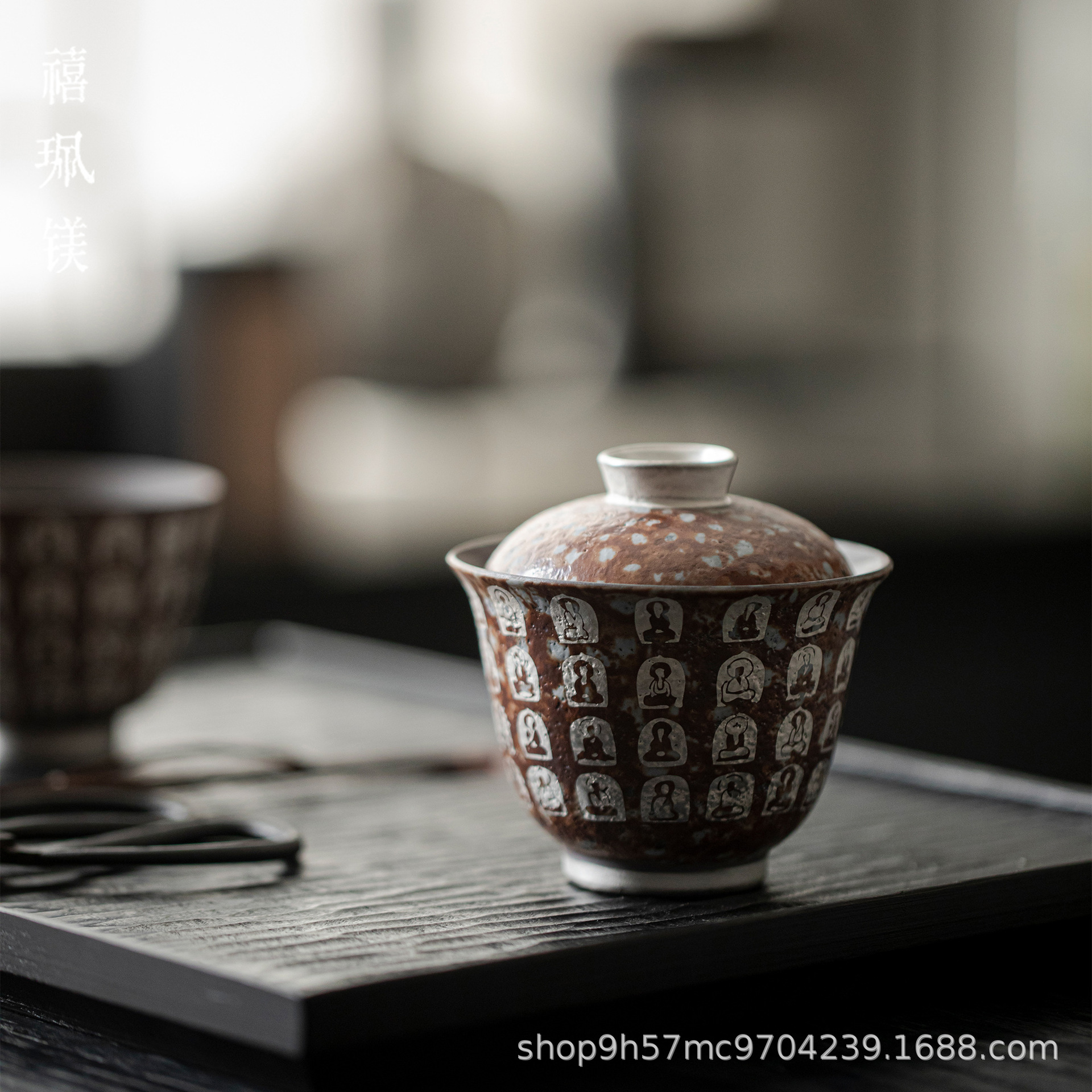 禧マグネシウム万仏銀禅意大容量蓋碗陶磁器泡茶碗家庭用高級カンフー茶杯