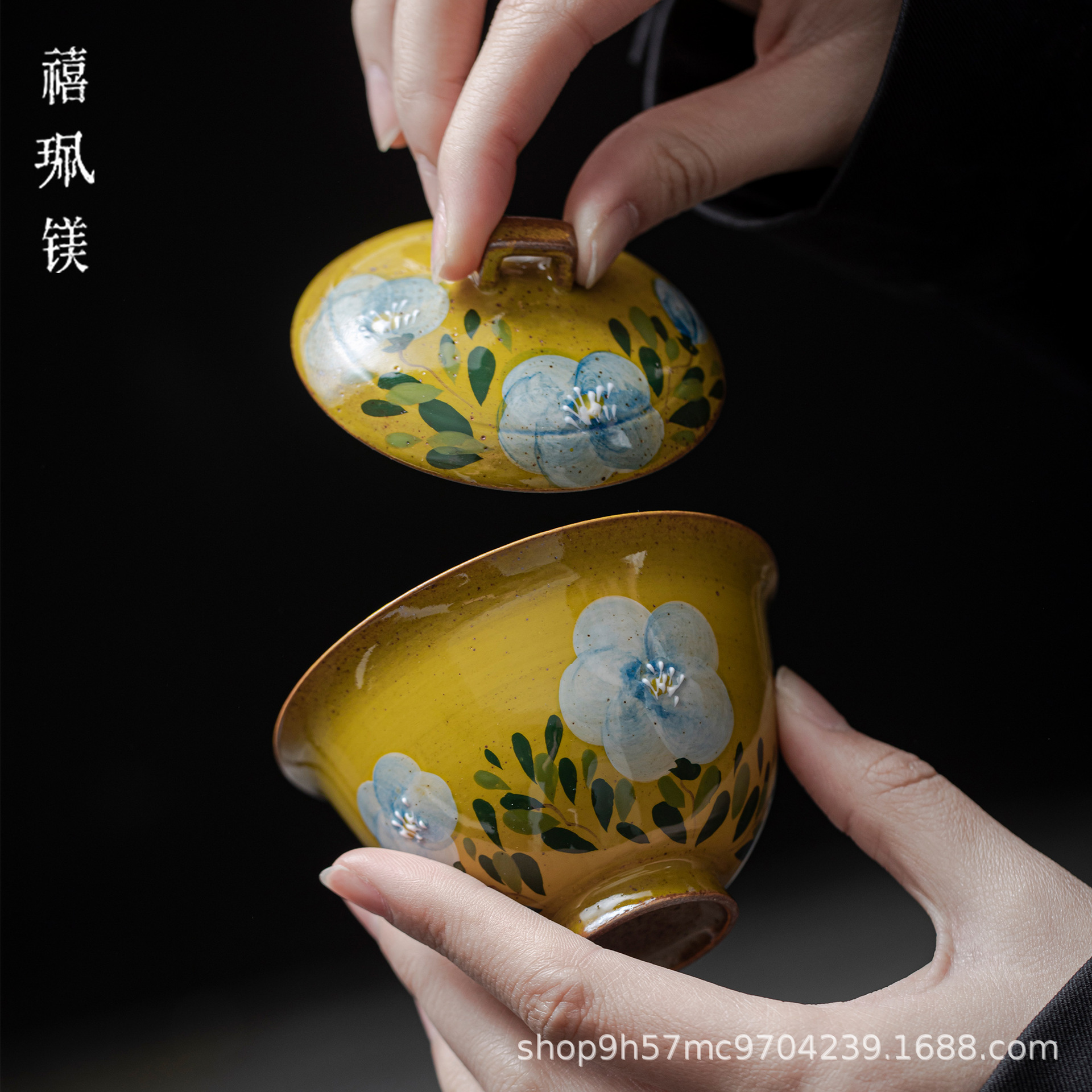 禧マグネシウム氷裂釉純手描き陶磁器壺承乾泡台蓋碗ティーポット底托多機能茶点皿