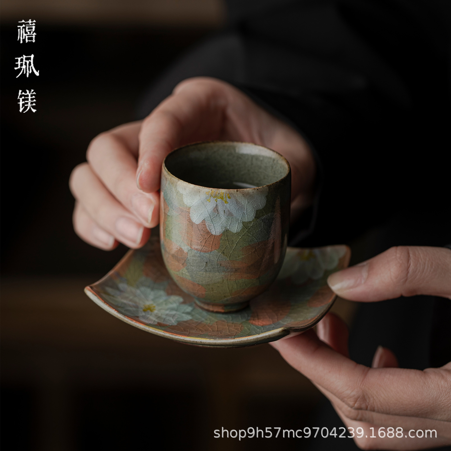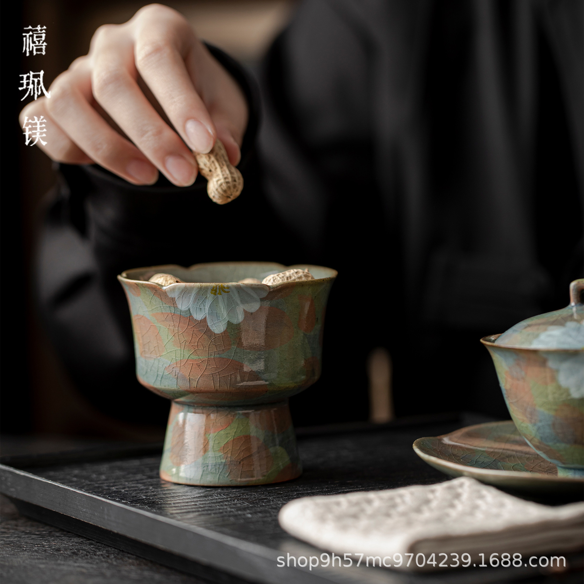 禧マグネシウム復古氷裂釉開片品茗杯陶磁器釉薬下彩手描きカップ温香カップ高足主人カップ