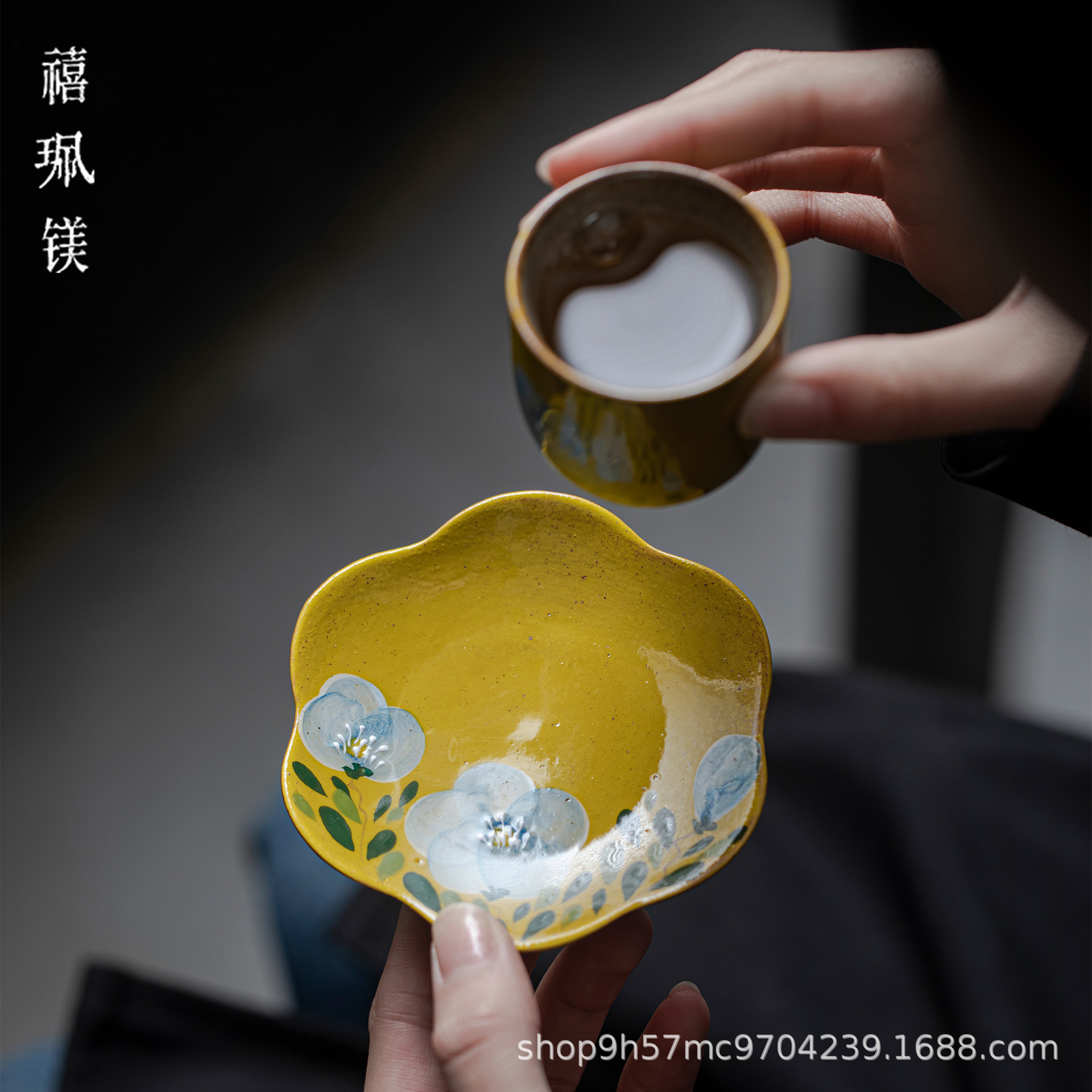 禧マグネシウム手描きツバキ陶磁器カップコースター女性品茗杯断熱パッド花びらカップパッド小茶点皿