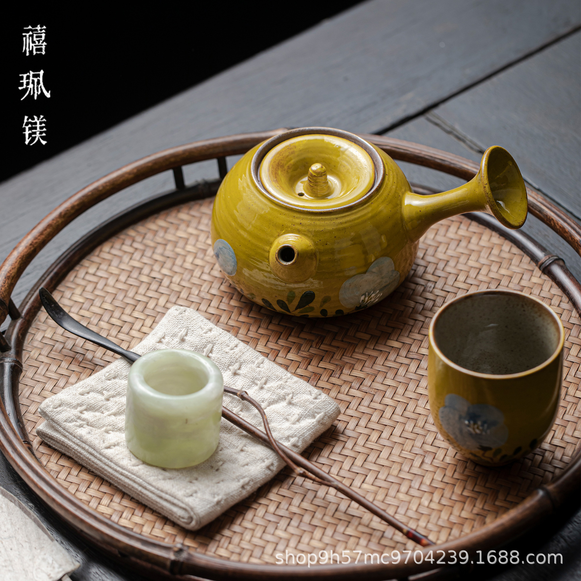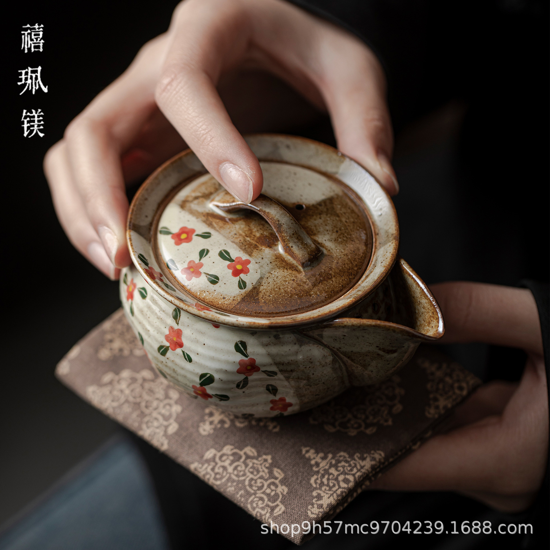 禧マグネシウム手描き小砕花レトロ陶磁器ティーポット家庭用工夫茶器ティーポット手掴みポット宝瓶単壺