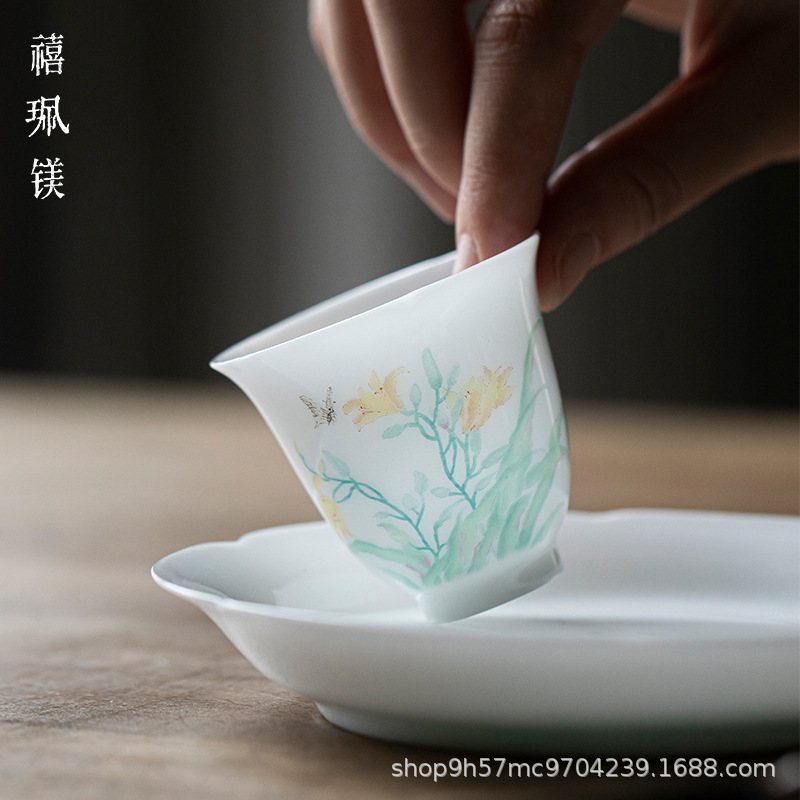 禧マグネシウム氷種玉磁器手描き花開花口カップ家庭用シングルカップ主人品茗個人専用茶器
