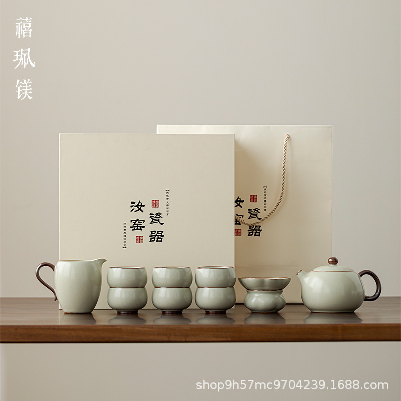 禧マグネシウム高級汝窯茶器セット家庭用開片は工夫茶logoを養って陶磁器の贈り物を印刷することができます。