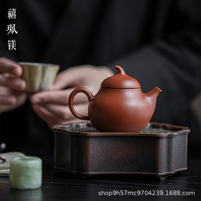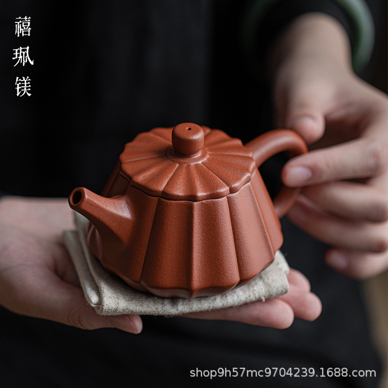 禧マグネシウム紫砂壺朱泥筋紋石瓢箪純全手作りティーポット一人工夫茶器セット大容量