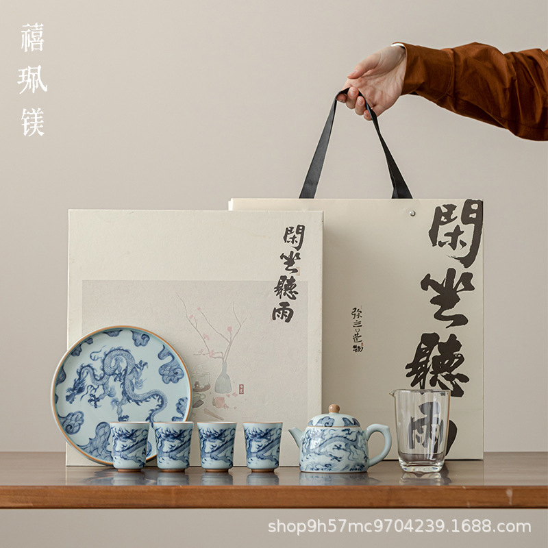 禧マグネシウム景徳鎮青花龍紋茶器セット大ティーポットカップ工夫茶器セット高級ギフトボックス