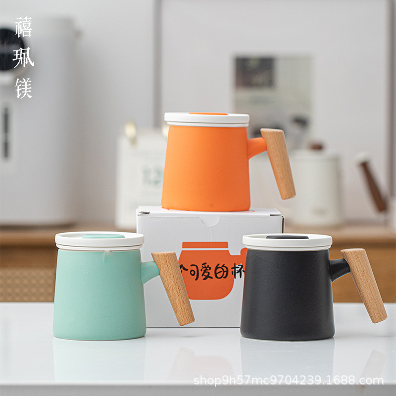 禧マグネシウム茶水分離ティーカップ事務室小清新大容量陶磁器コップ蓋付き濾過マグカップ