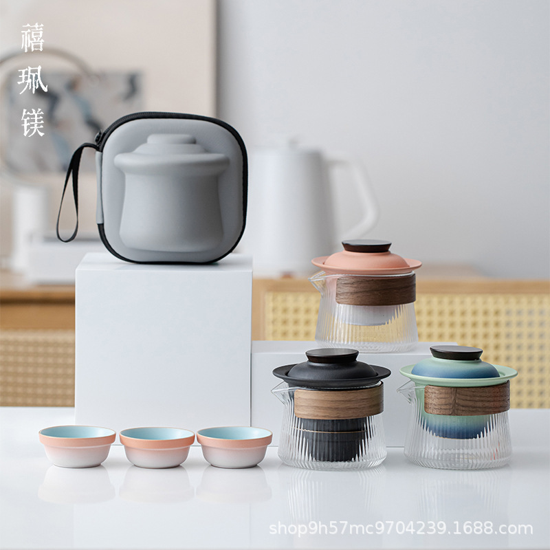 禧マグネシウム快客杯便捷式旅行茶器一壺三杯の随行杯の屋外でお茶を入れる陶磁器のカップセット