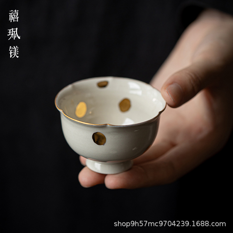 禧マグネシウム主人杯草木灰撒金レース品茗杯家庭用日本式個人専用陶磁器単杯でお茶を飲みます。