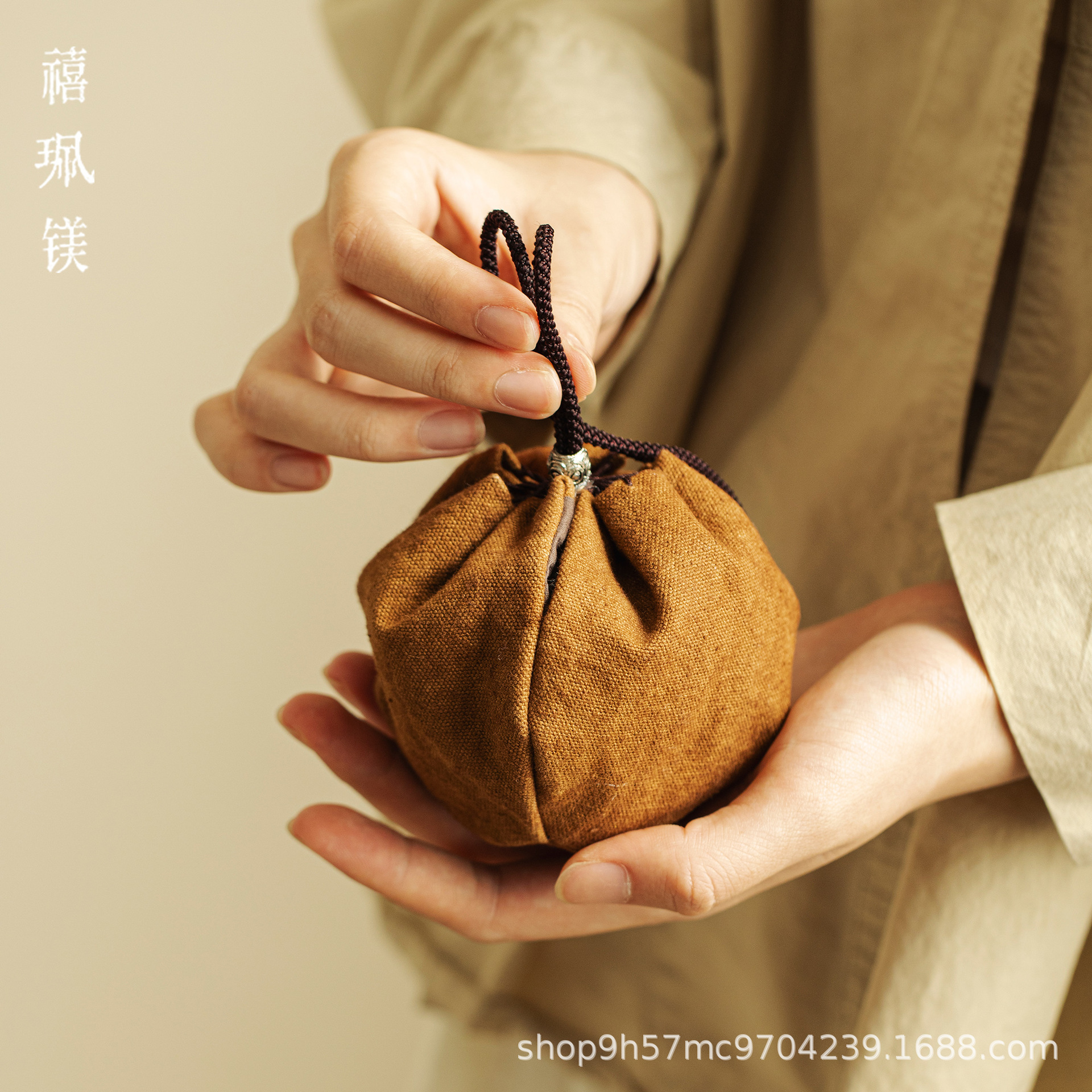 禧マグネシウムは綿麻のティーカップの袋を染めて携帯します。