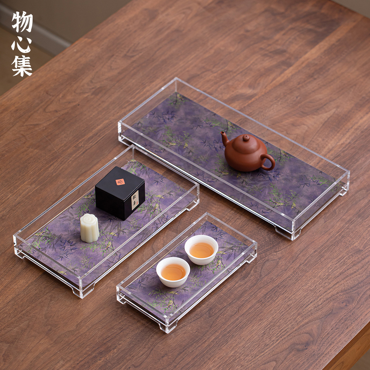 Wuxinji アクリル長方形プレート家庭用シンプルで多用途なドライバブルプレート、ティーマット付きカンフーティーセットティーセット収納トレイ