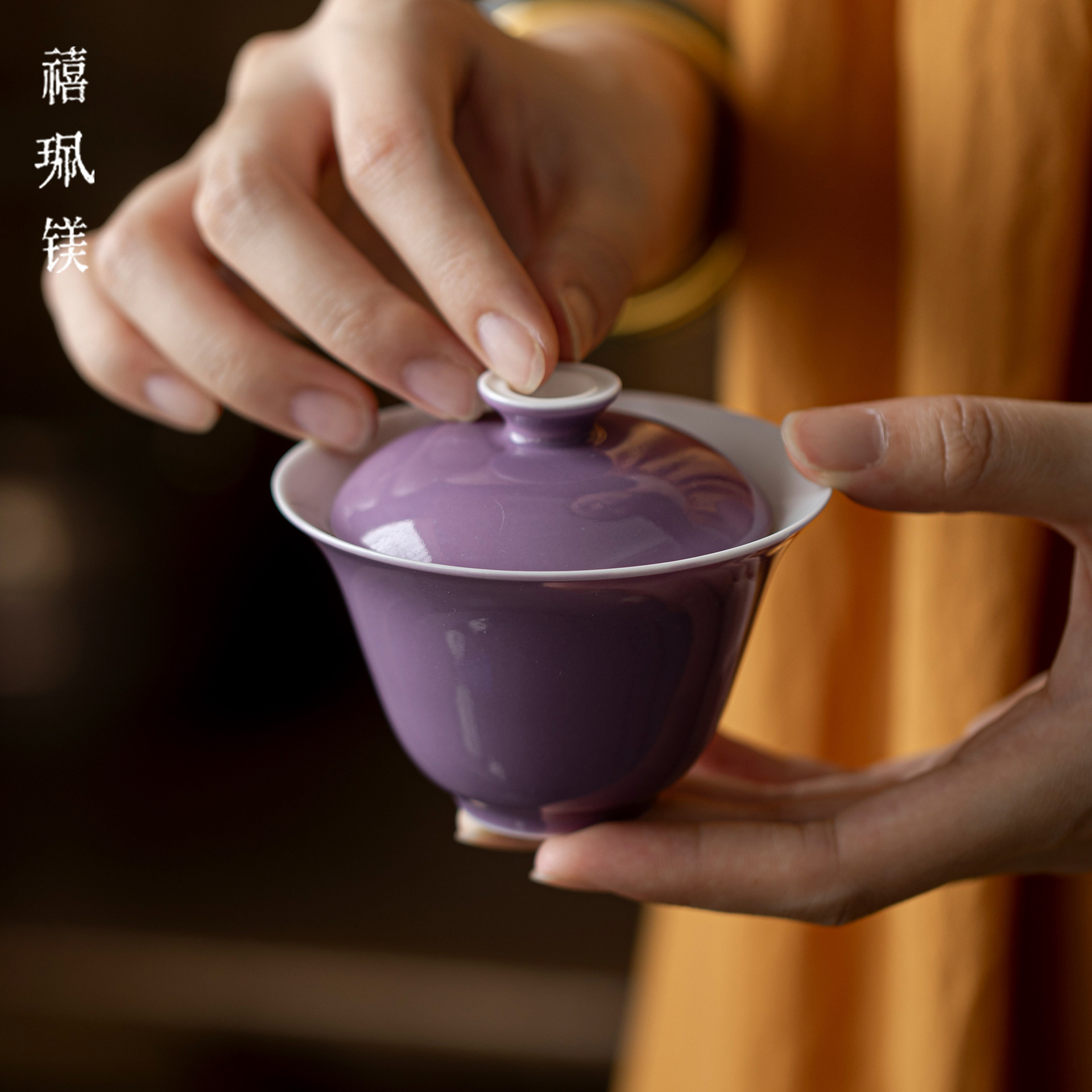 禧マグネシウム釉薬下彩紫品茗杯岩茶小容量お茶カップ家庭用陶磁器カップ客カップ小カップ