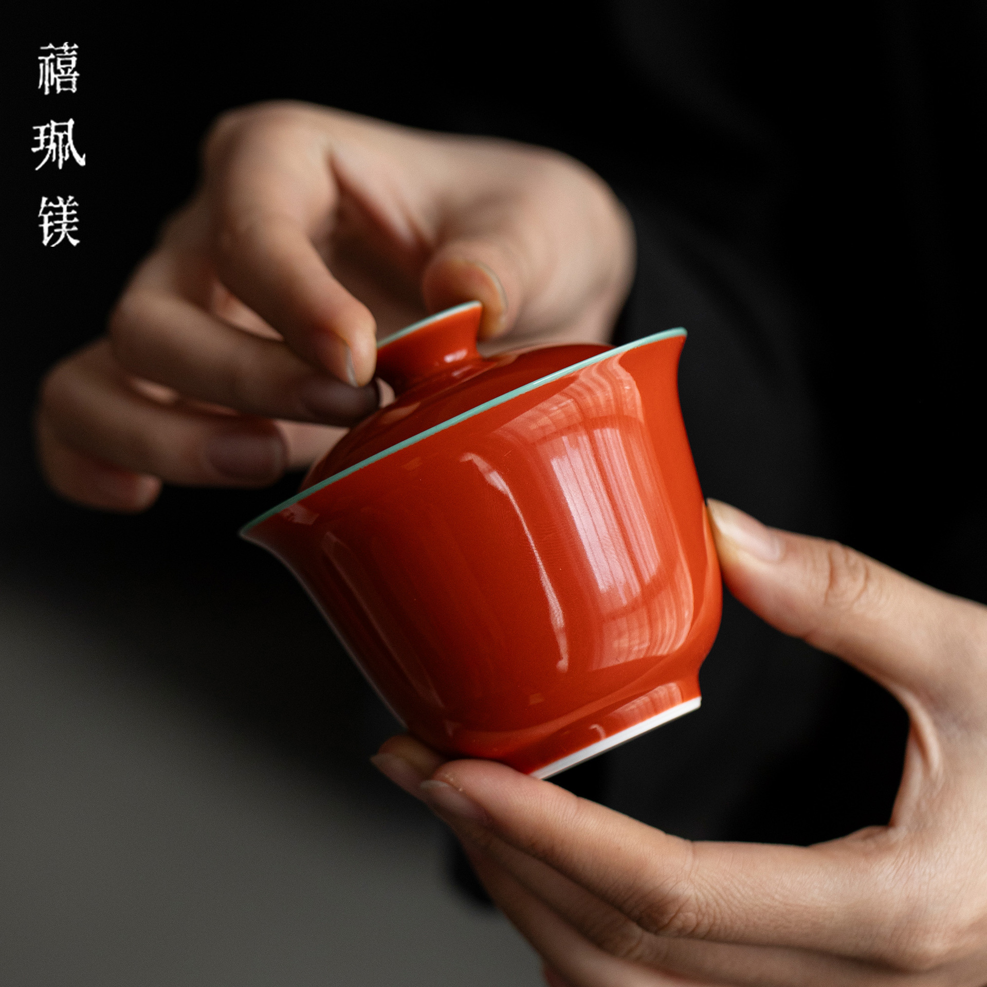 禧マグネシウム故宮紅松石緑蓋碗工夫茶器陶磁器二才はお茶を入れます。
