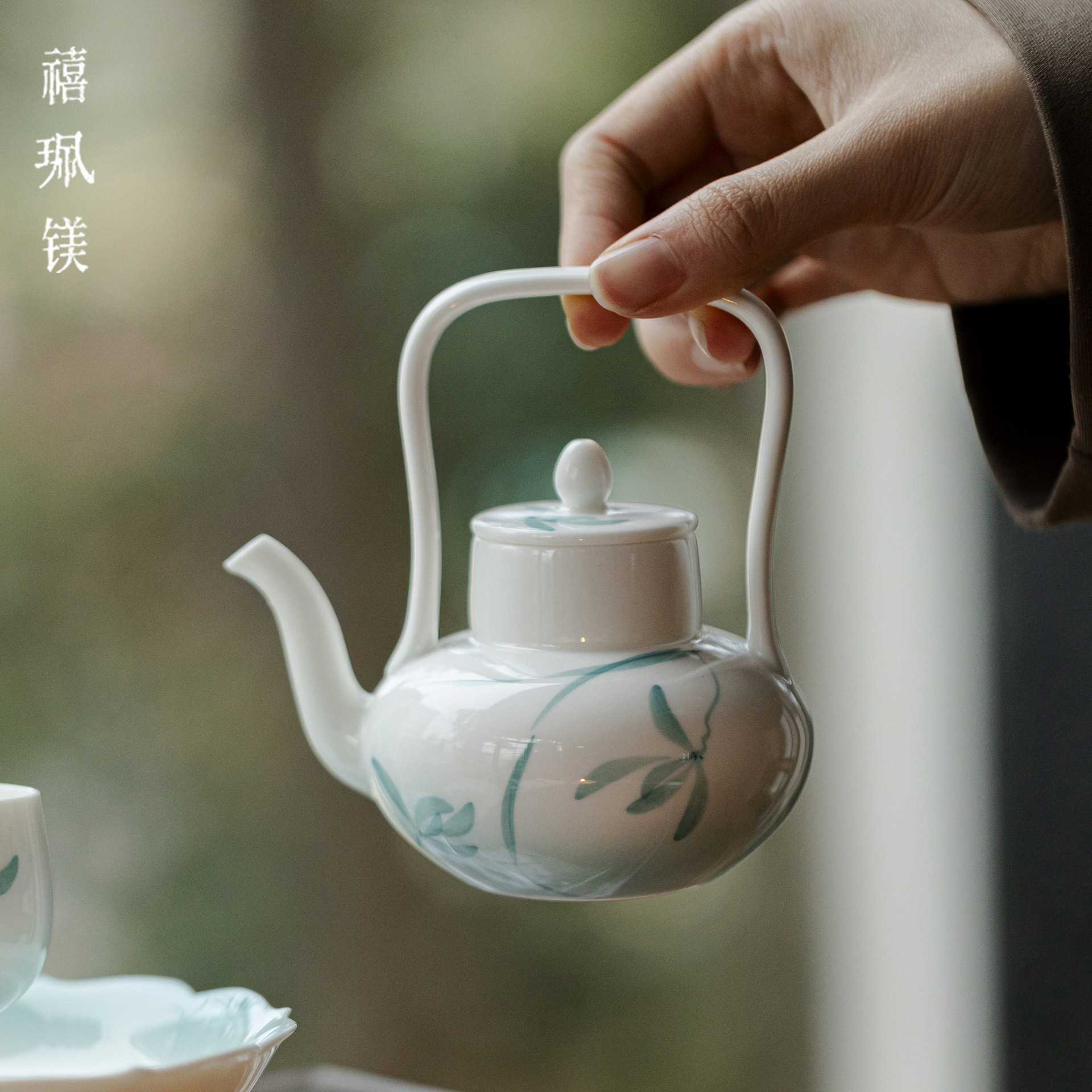 禧マグネシウム手描き蘭工夫茶器陶磁器提梁壺家庭用ボール穴ろ過玉泥白磁茶ティーポット