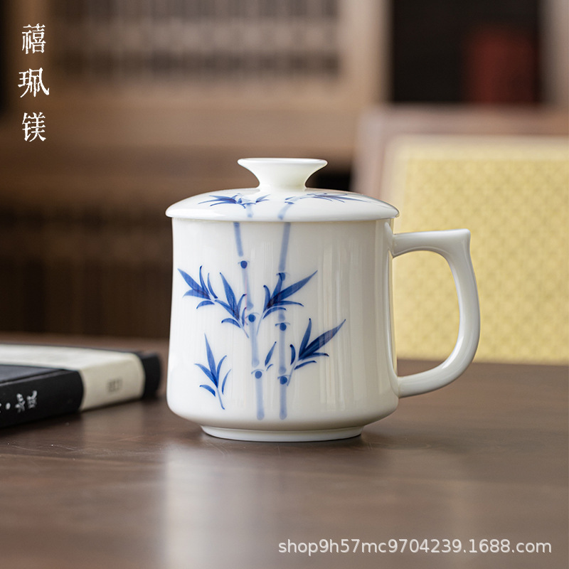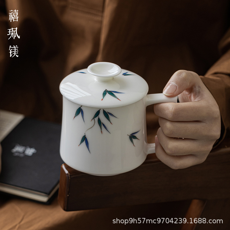 禧マグネシウム手描き文竹陶磁器杯ホテル会議事務室ビジネスプレゼントlogo蓋付きコップ