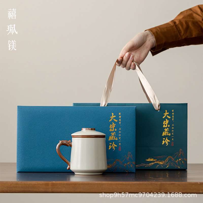 禧マグネシウム汝窯オフィスカップ茶水分離帯フィルタ付き蓋開片マグカップ高級会社ロゴ