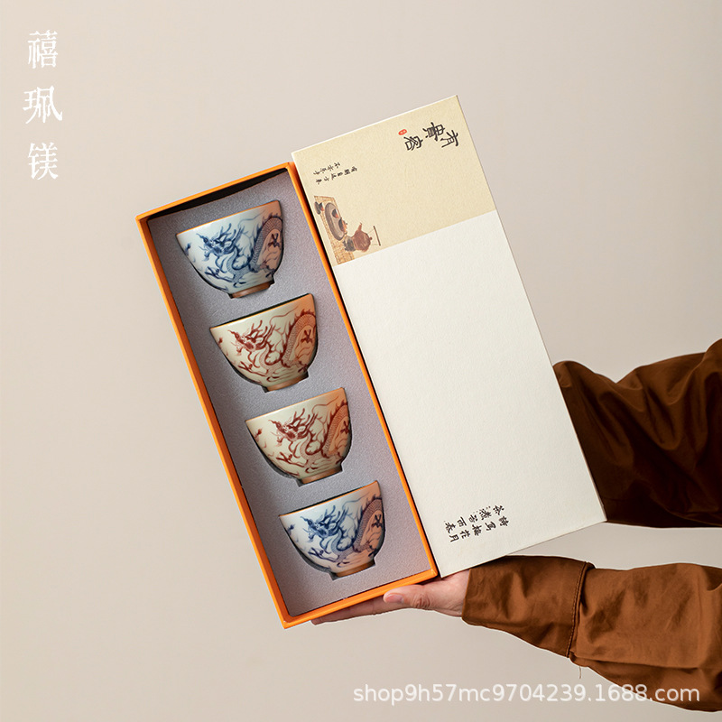 禧マグネシウム青花龍紋主人杯陶磁器カップ家庭用個人専用シングルカップビジネス国風お土産