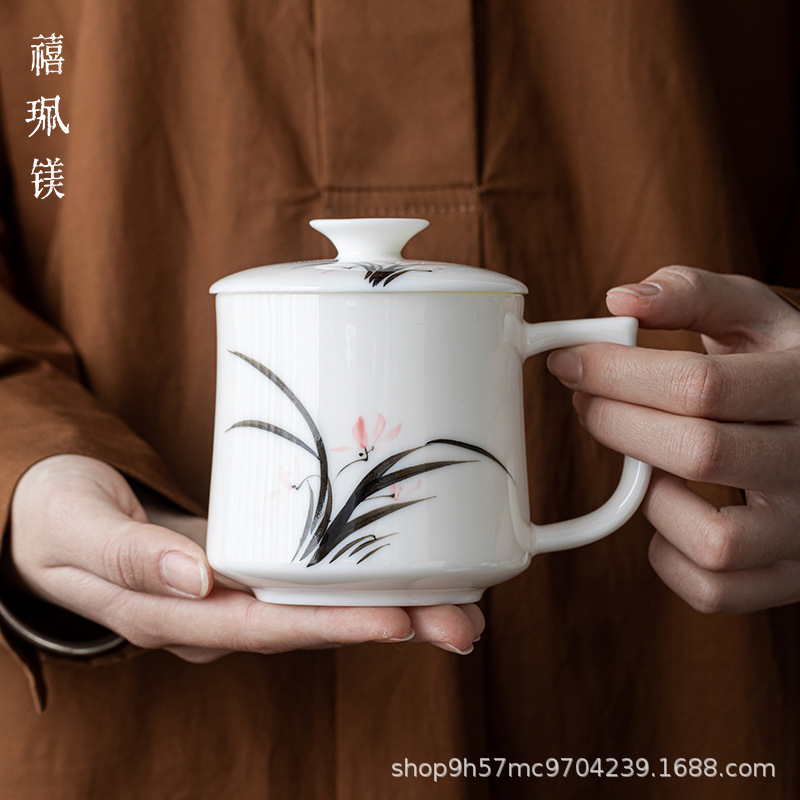 禧マグネシウム手描き墨蘭陶磁器杯ホテル会議事務室ビジネスプレゼントlogo蓋付きコップ