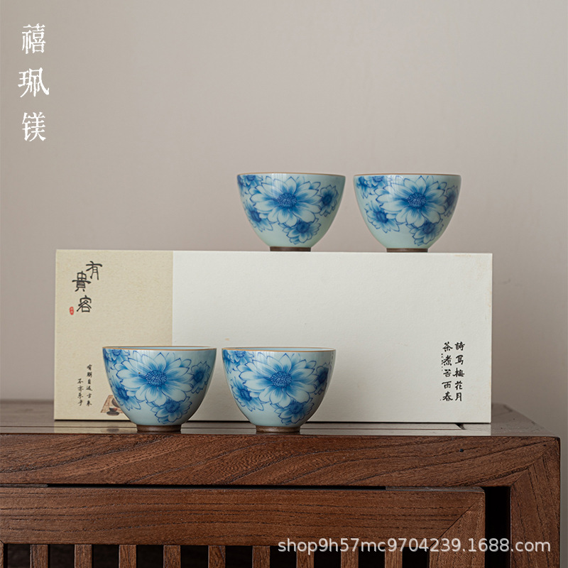 禧マグネシウム手描き青花主人杯陶磁器カップ家庭用個人専用シングルカップビジネスハイエンドお土産