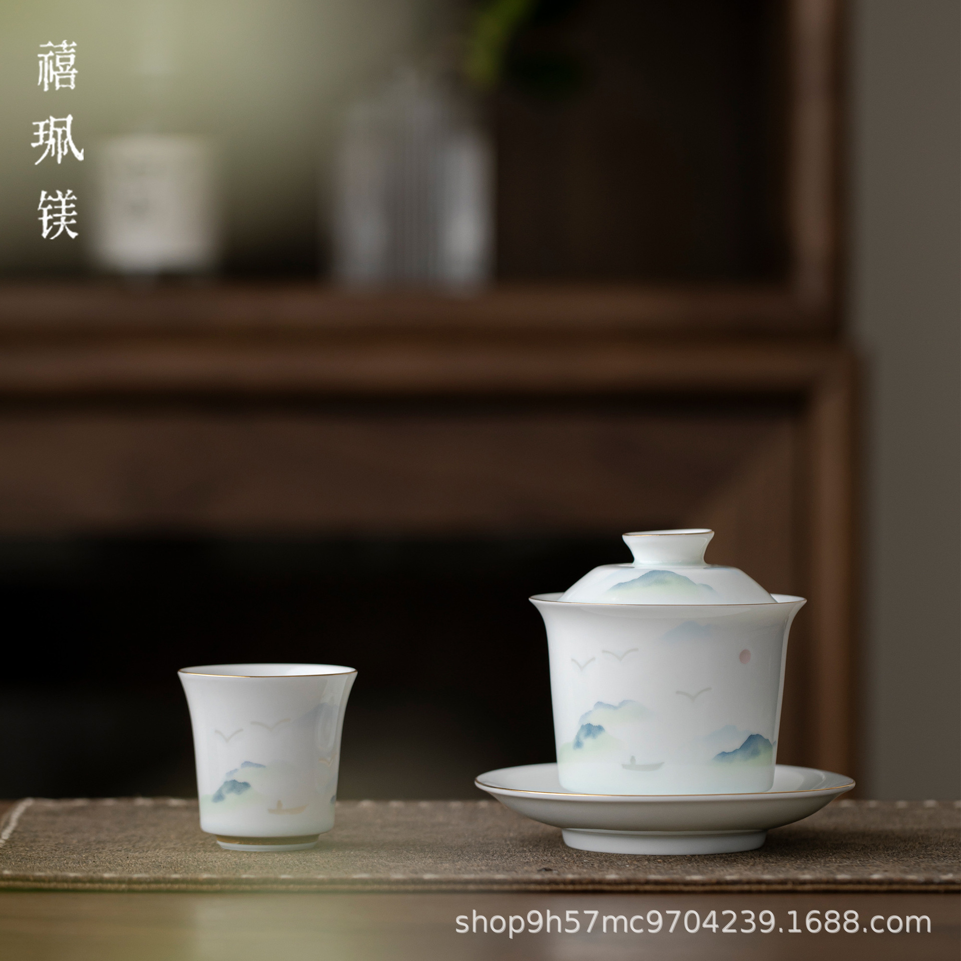 禧マグネシウム蓋碗中国白江山三才泡茶器精巧な透かし彫り陶磁器茶碗大容量は手を温めません。