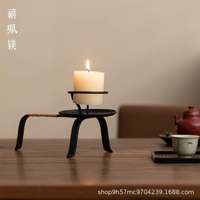 禧マグネシウム中国式レトロな鉄芸の燭台は寂しい風のお茶のテーブルの旧式の蝋台の置物の手作りの鋳鉄のランプのアロマです。