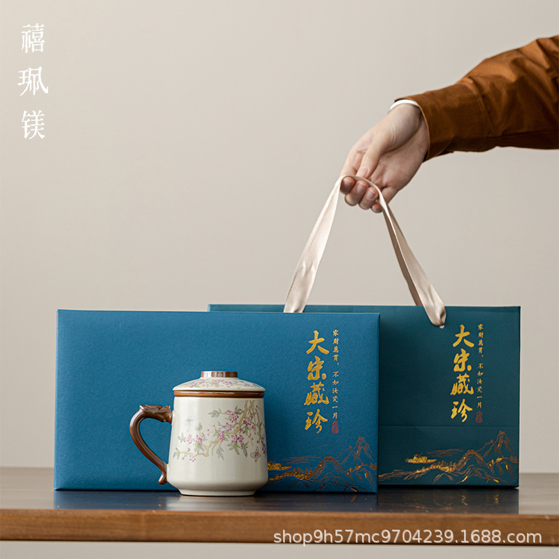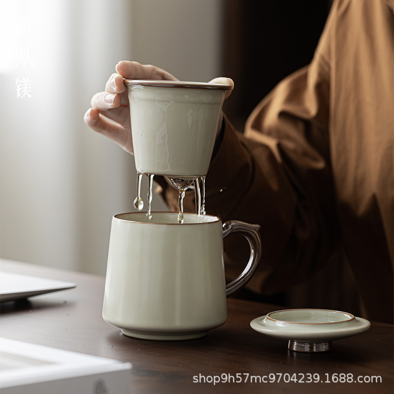 禧マグネシウム汝窯は、オフィスカップの陶磁器の蓋付きコップとお茶の分離コップを養うことができます。