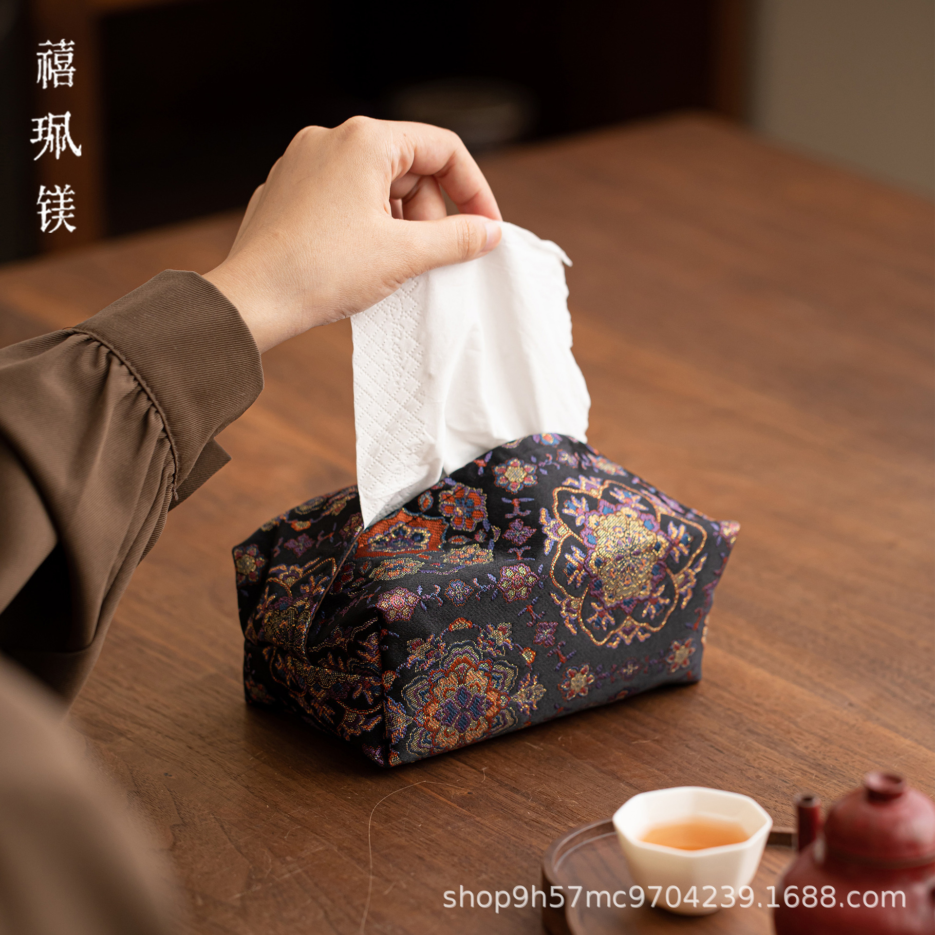 禧マグネシウム中国式宋錦ティッシュケース高級で洗練された紙箱家庭用レトロ禅意デスクトップティッシュカバー