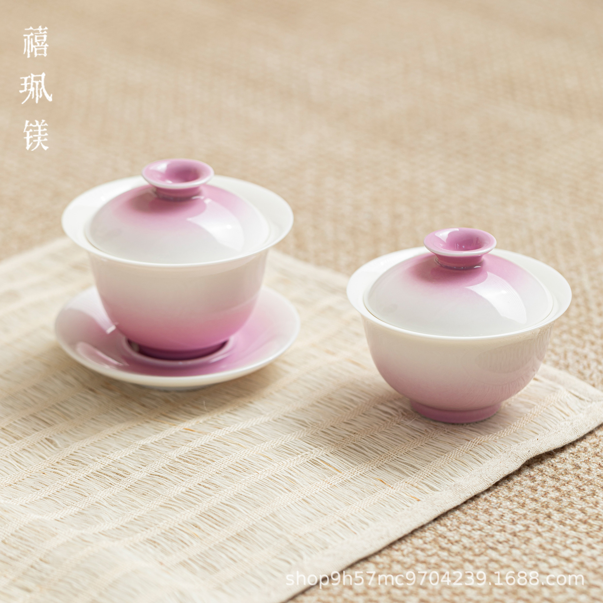 禧マグネシウム遠山紫グラデーション三才蓋碗日本式蓋付き手掴み茶器家庭用アイロンなし茶茶碗