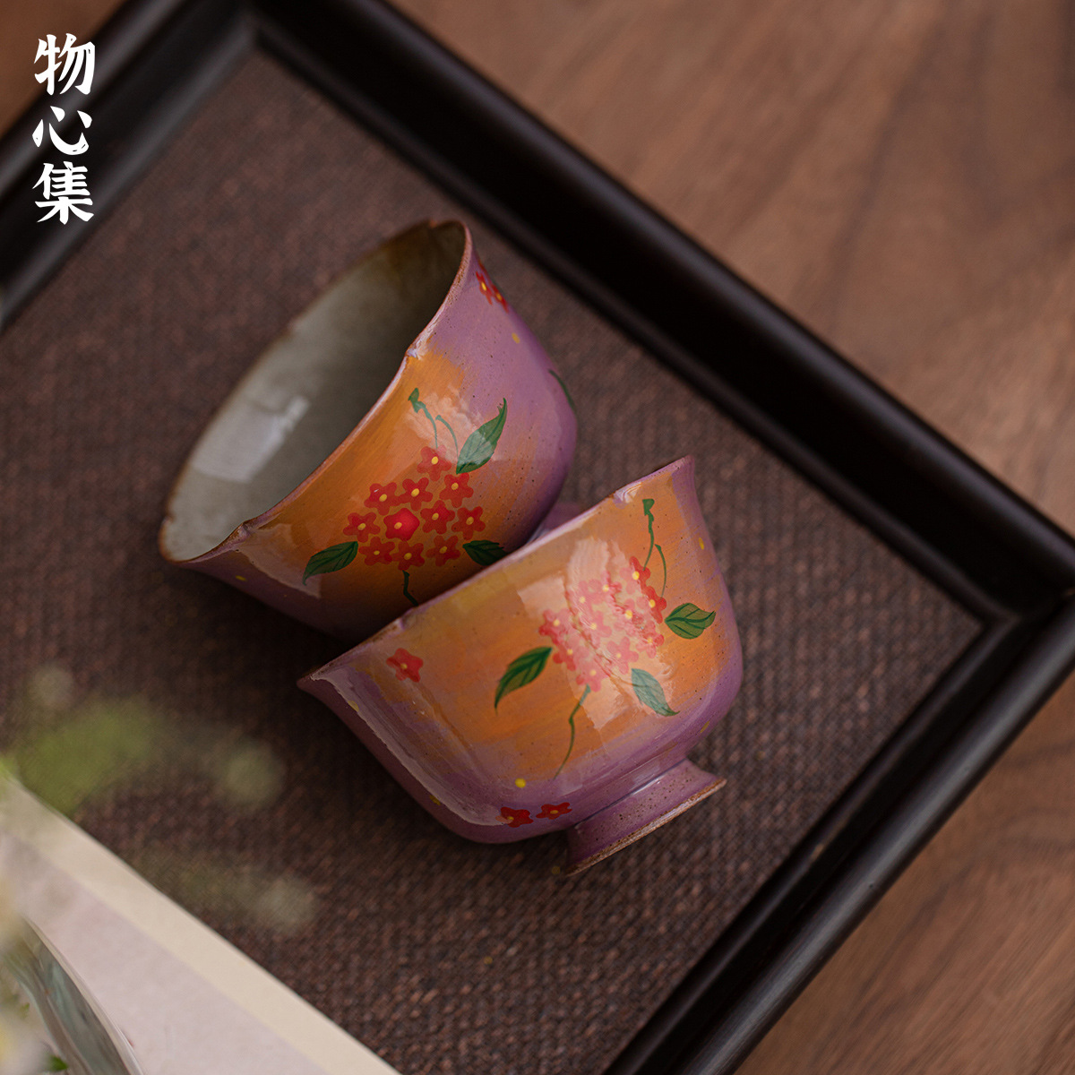 物心集雲霞紫釉薬下彩高足花口品茗杯工夫茶器家庭用陶磁器主人杯単杯