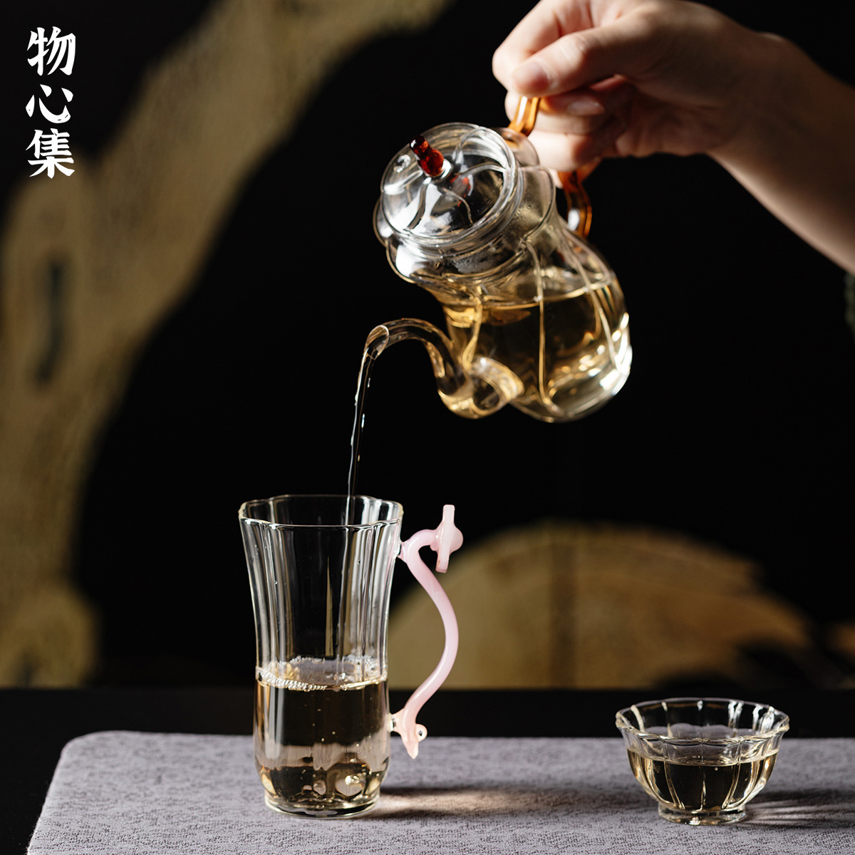 Wuxinji 高ホウケイ酸カンフー ティー カップ ピンク如意ハンドル ガラス オフィス レディース 高温耐性ウォーター カップ