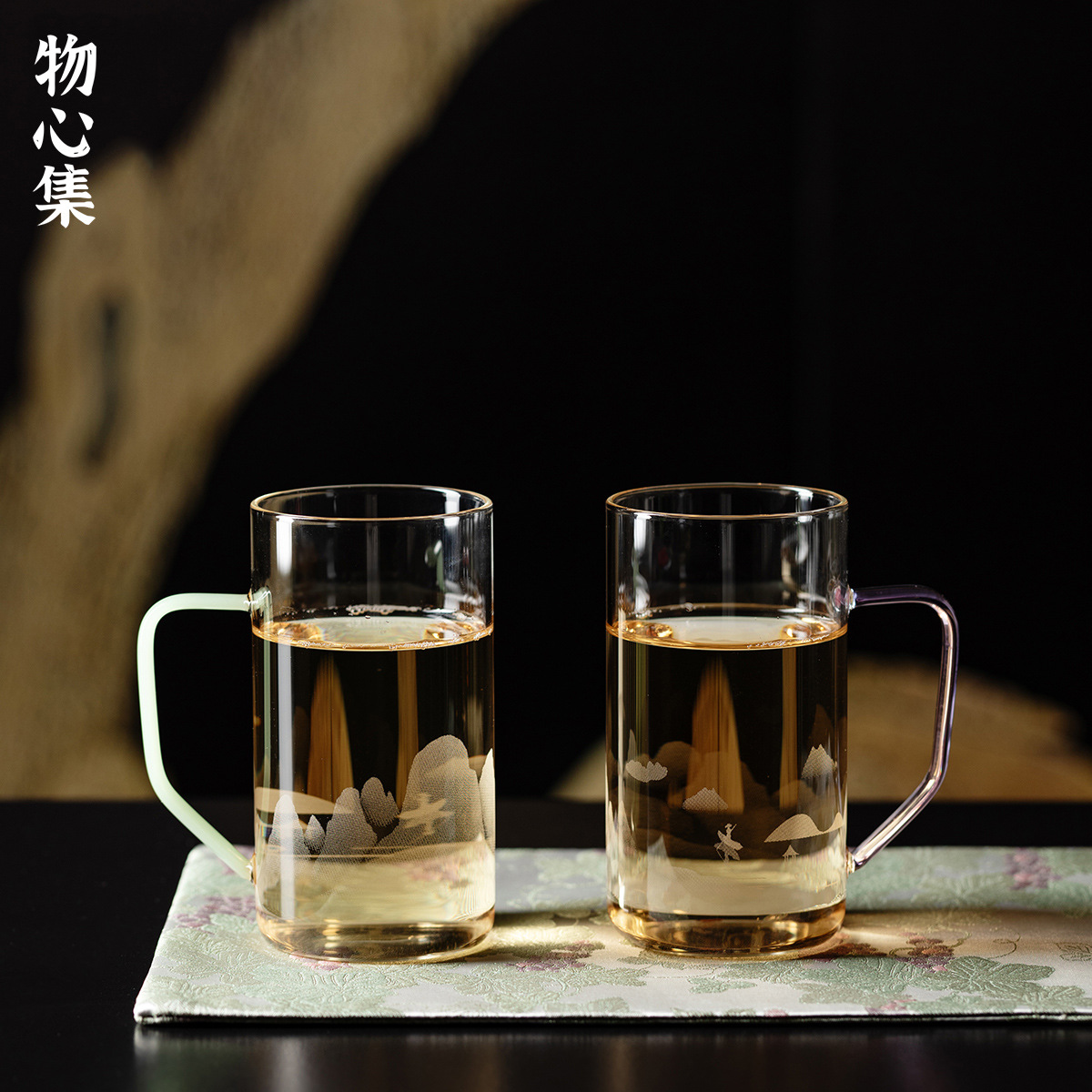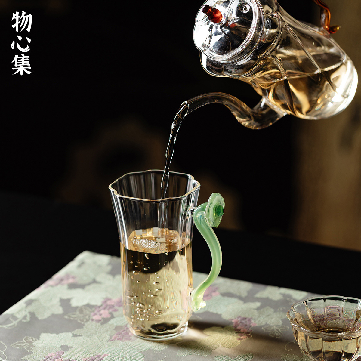 Wuxinji 高ホウケイ酸カンフー ティー カップ グリーン如意ハンドル ガラス オフィス レディース 高温耐性ウォーター カップ