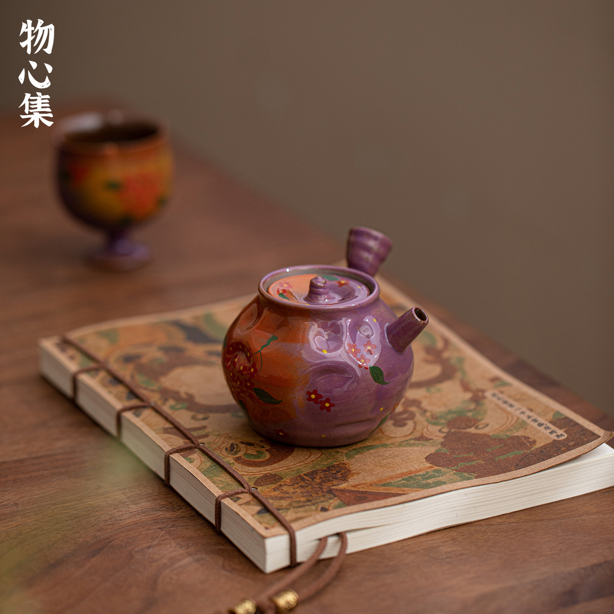 物心集雲霞紫手描き側は壺工夫茶道具を手にして壺を握っています。
