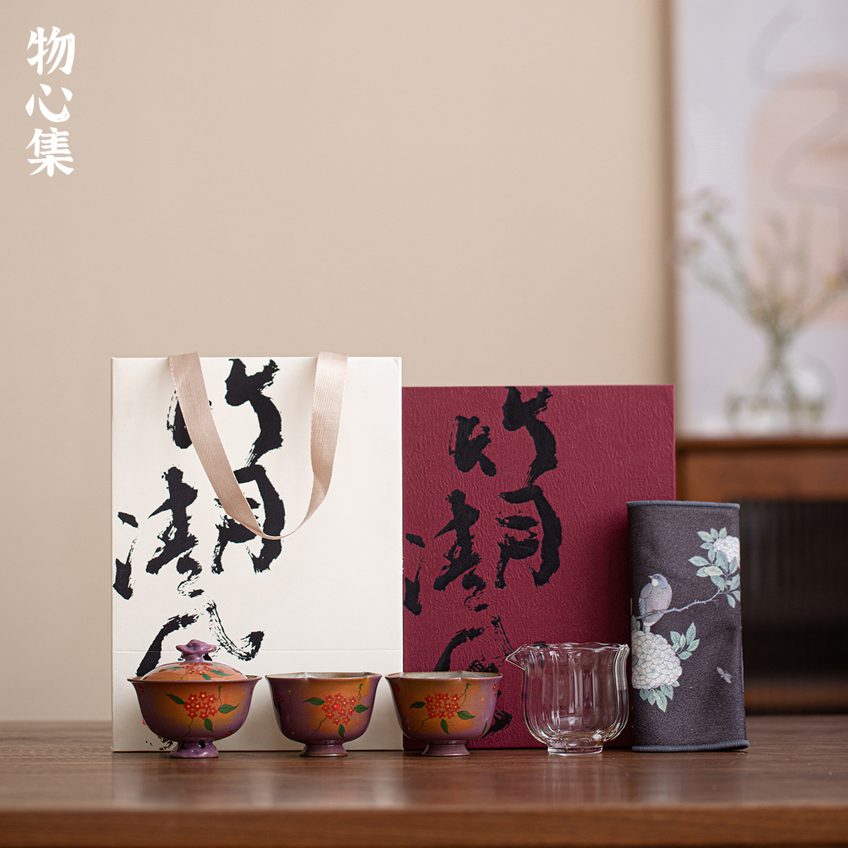 Wuxinji Yunxia 紫太湖石蓋ボウルティーカップセットカンフーティーセットハイエンドセラミックギフトギフトボックスギフト