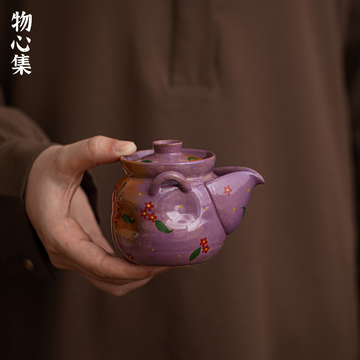 物心集雲霞紫純手描き小紅花ティーポット陶磁器宝瓶茶具工夫茶器来泡ティーポット