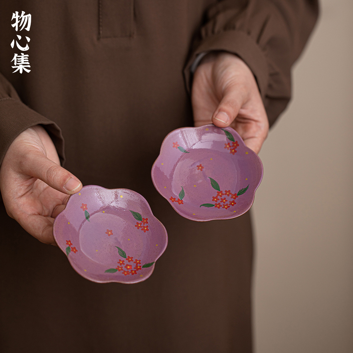 Wuxinji Yunxia 紫釉手描きの小さな赤い花レースコースターカンフーティーセットティーカップベース断熱パッド