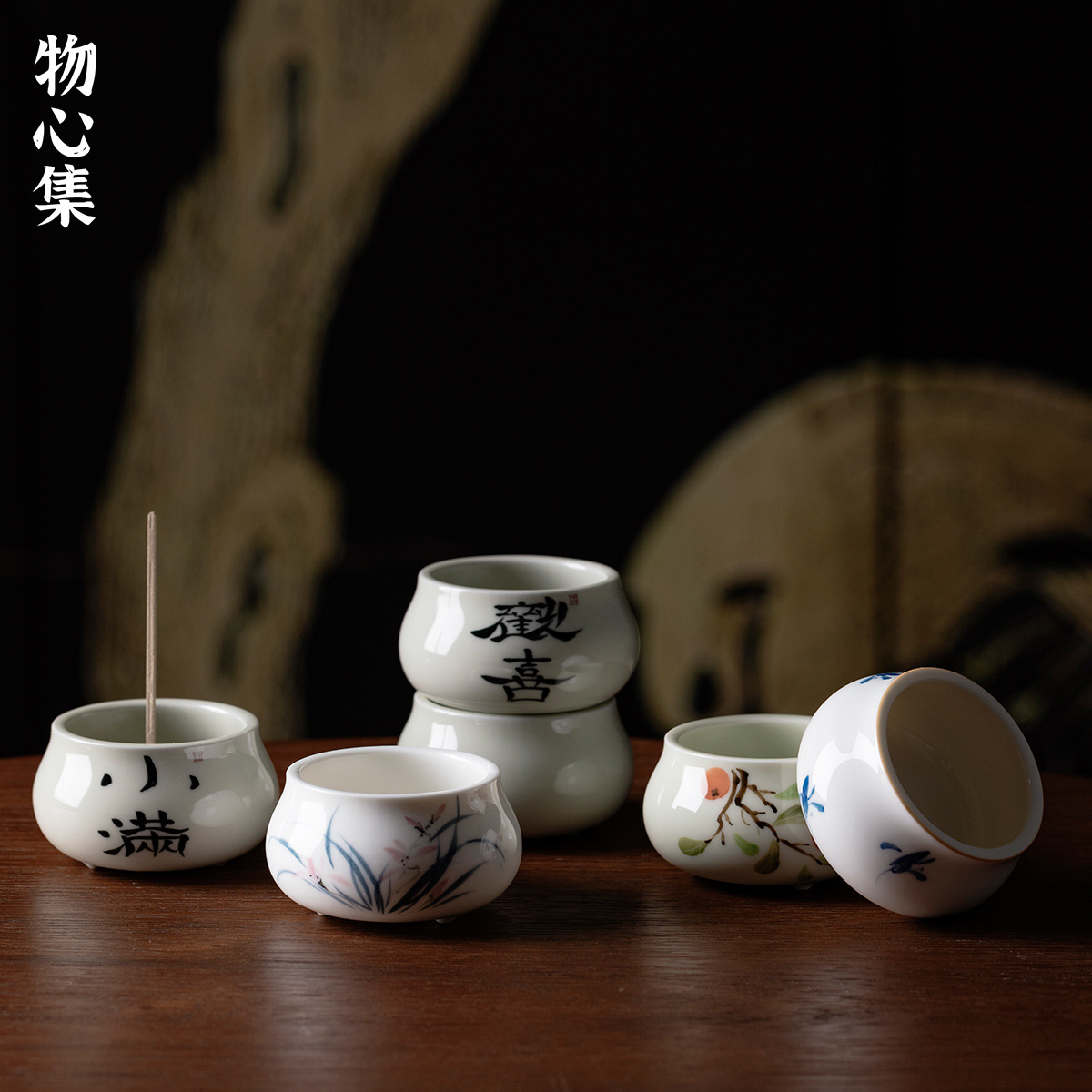 Wuxinji カラフルなガラスの香、カンフー茶セット、クリエイティブなデスクトップ線香、沈香の小さな装飾品、手作りのカバーとホルダー