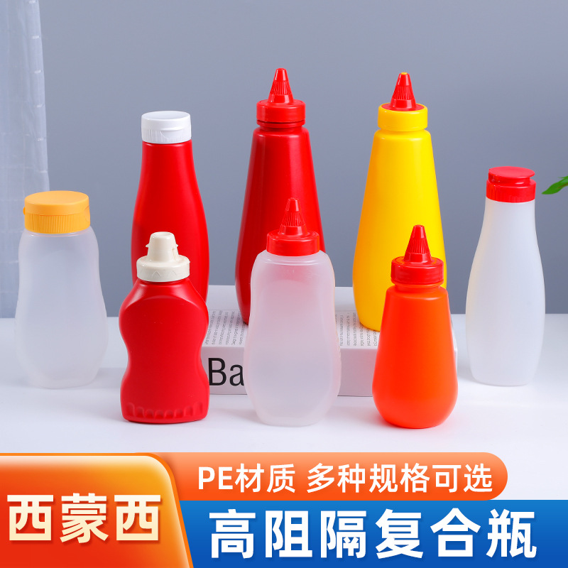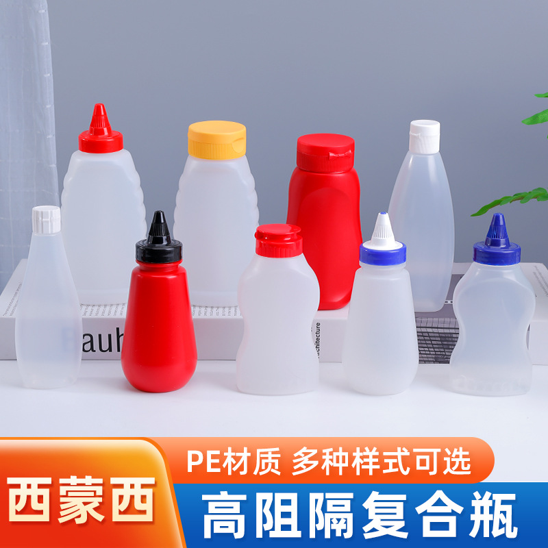 高遮断性食品グレードプラスチックボトル、多様なサイズのソース絞り出しボトル、密封容器、家庭用および業務用PE鮮度保持保存容器