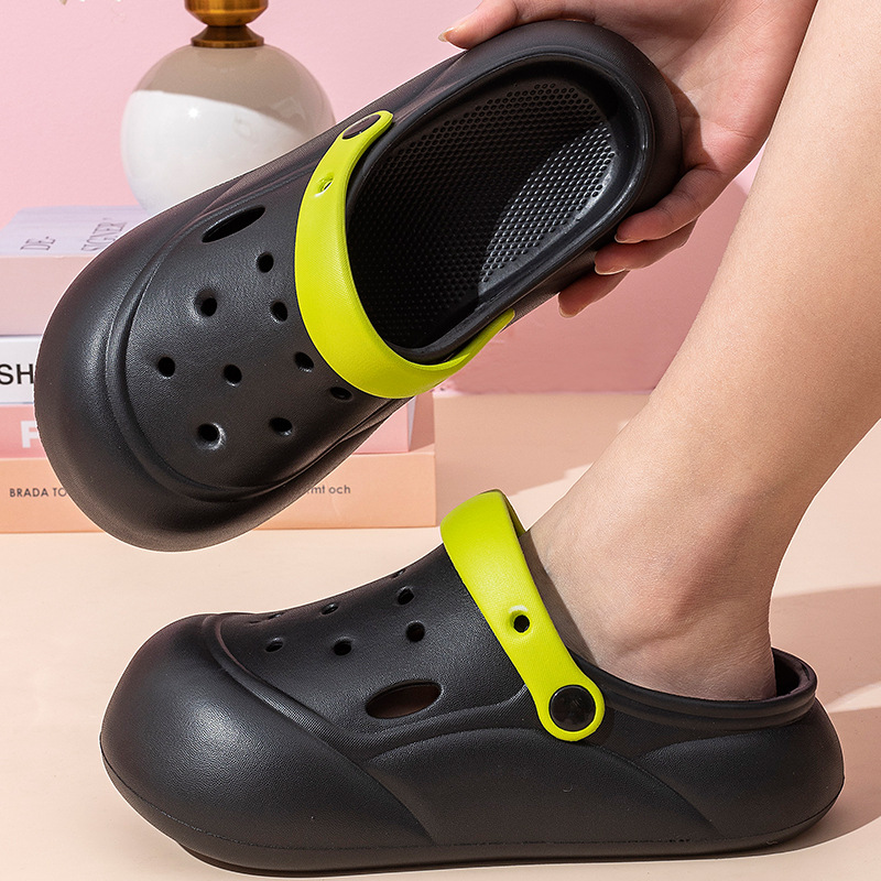 女性のハイヒールの厚い底の穴の靴の女性の新型の滑り止めの砂浜は高くなって頭のサンダルのスリッパの女性の夏の外は着ます。
