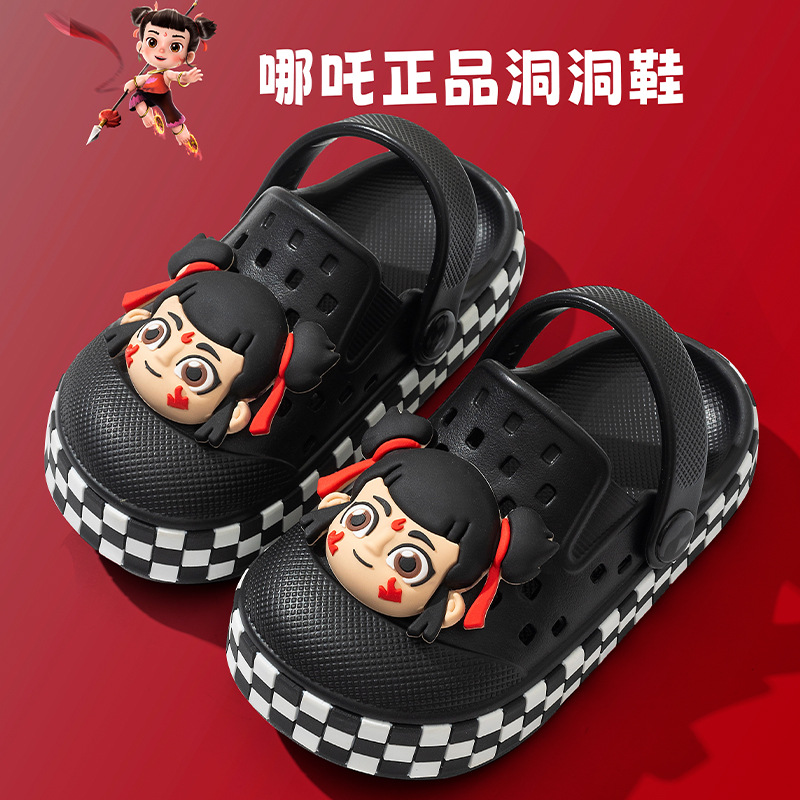 本物の哪吒子供用スリッパ、2025年ベビー用スリッパ、夏用ホームスリッパ、滑り止め付き室内用、男の子と女の子用の穴あきスリッパ