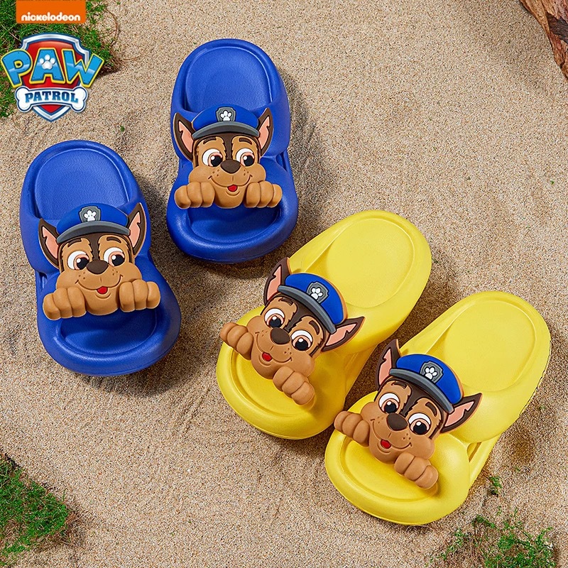 汪汪隊の子供のサンダルは家の外で子供の靴を履いています。