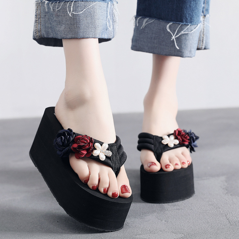 2023新型夏スリッパ11センチ超ハイヒールビーチスリッパ小香真珠スリッパ海辺の人字引き女