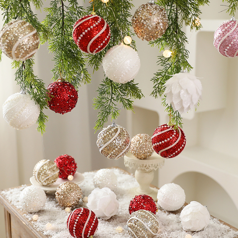 Amazon ベストセラー 8 センチメートルクリスマスボールパールフォームボールクリスマスツリーペンダント装飾ボールディップパウダーボールペンダント