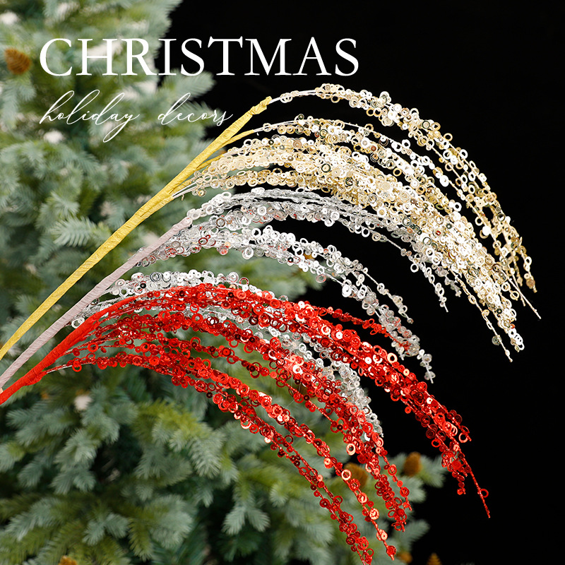 アメリカンクリスマス装飾ゴールデンレッドクリスマスツリー装飾手作りdiyアクセサリー花火スパンコールキラキラ挿し木