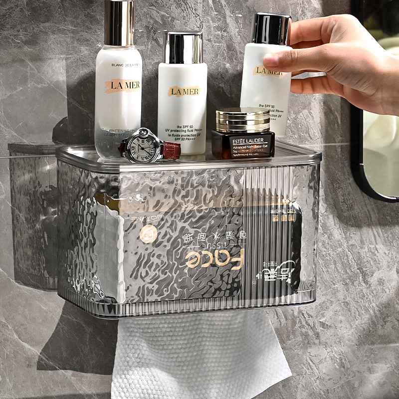クロスボーダーウォーターリップル壁掛けフェイスタオル収納ボックス透明ティッシュボックスバスルームトイレ逆さまティッシュボックス