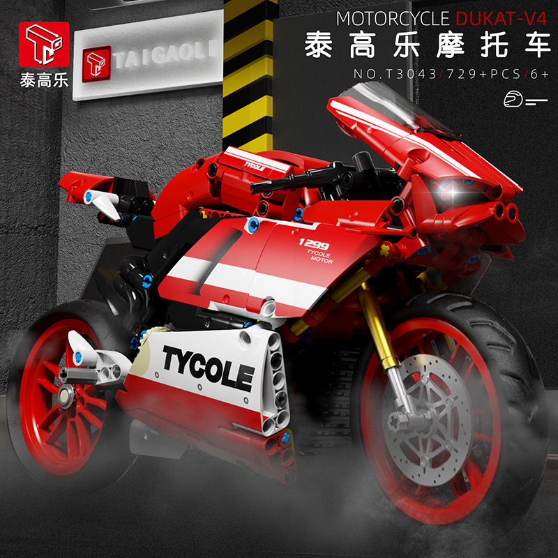 泰高楽3043杜卡迪オートバイ模型子供の益智は積み木のおもちゃと互換性があります。