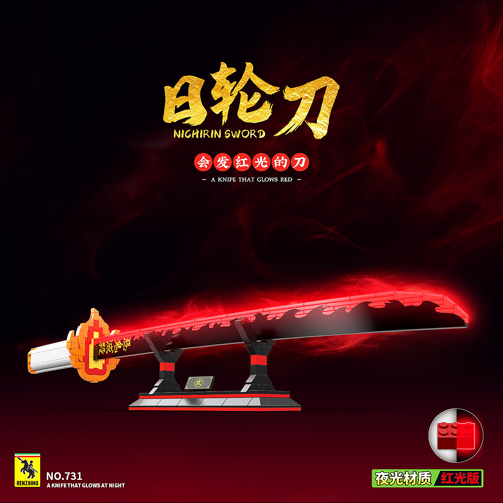 全冠731鬼滅の刃赤色版日輪刀炎柱の刀積み木の組み合わせおもちゃの刀剣cos男の子