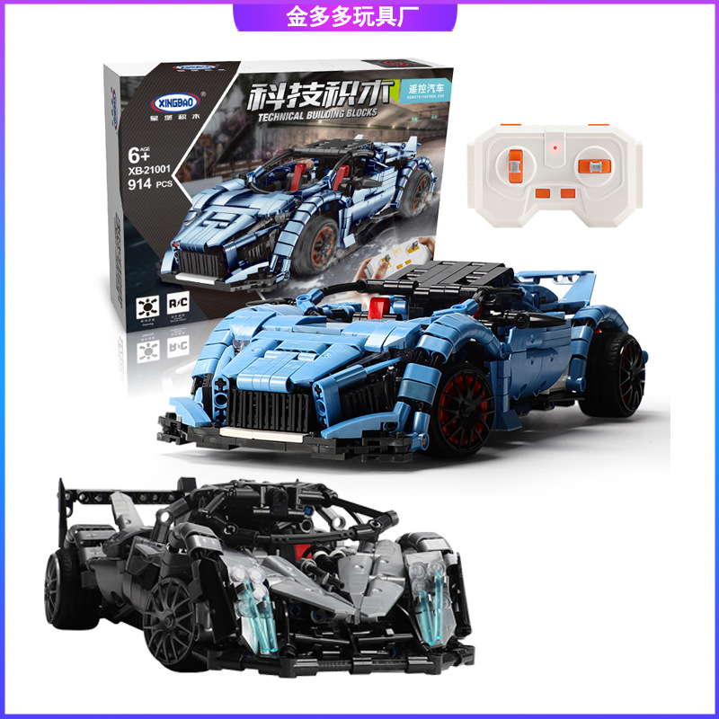 星堡21001-02ライケンは科学技術のリモコンスポーツカーのusb充電子供の益智を突撃して積み木のおもちゃをつづり合わせます。