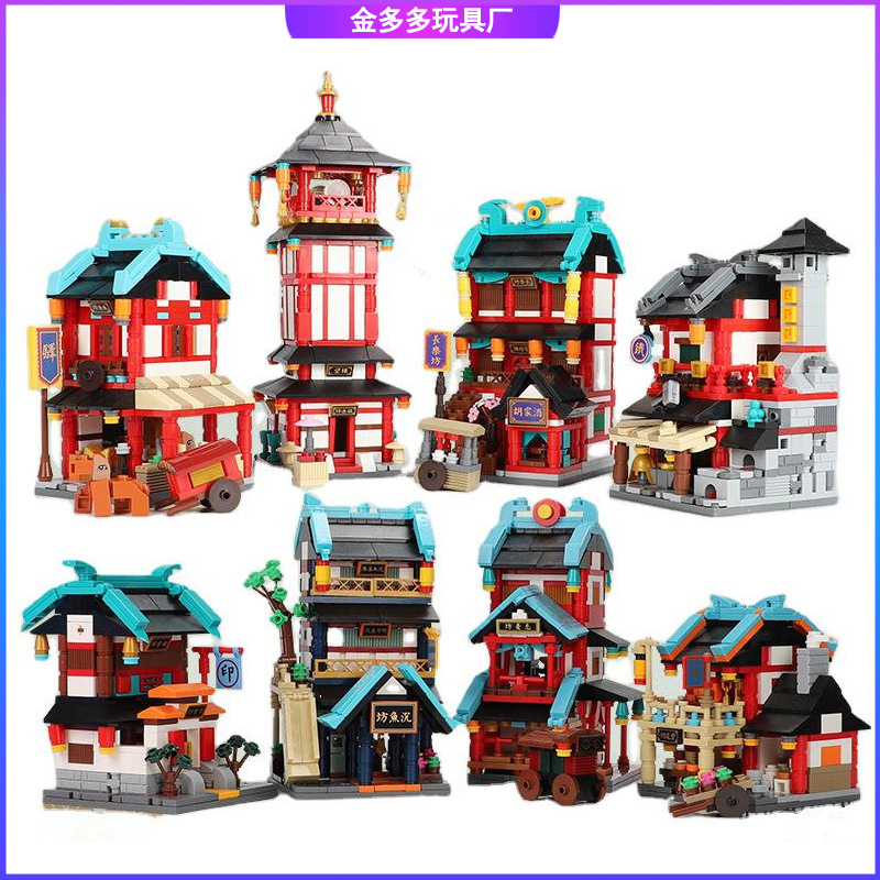 星堡01115-22長安朱雀街セットb組8種類のミニストリートビュー子供の組み合わせ