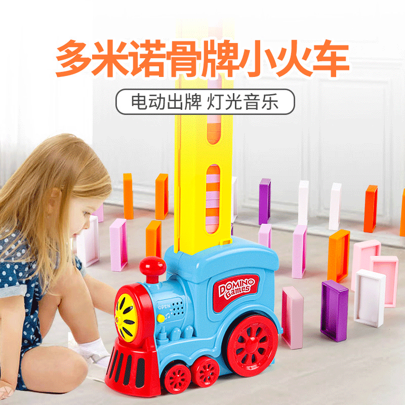 クロスボーダーの人気モデルのネットレッドのドミノの益智の子供は自動的に発牌立牌の電動の小さい列車のおもちゃを投入します。